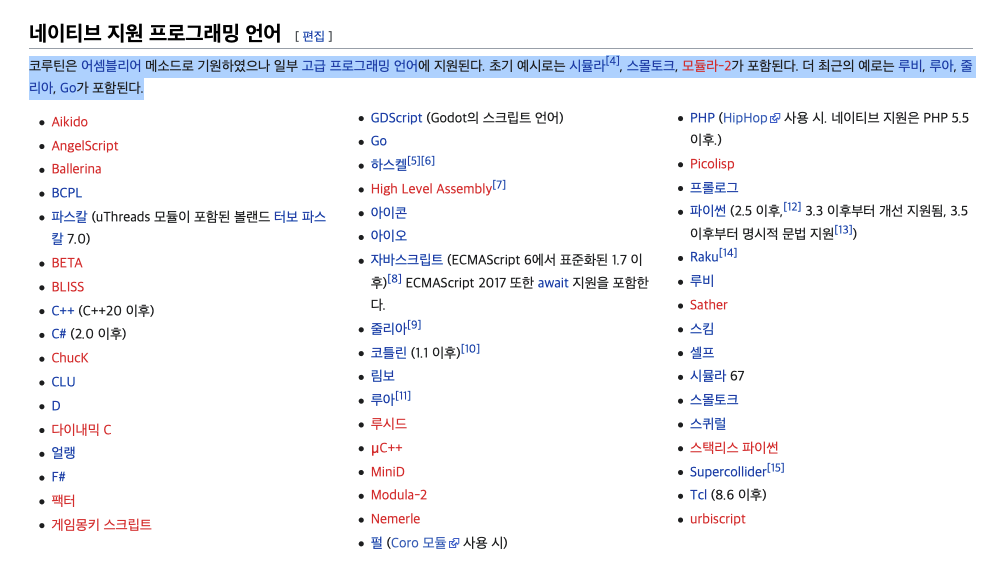 다른 언어를 한번 살펴볼까요? 파이썬 문서를 보니 파이썬에도 Coroutine이라는 설명이 있습니다.