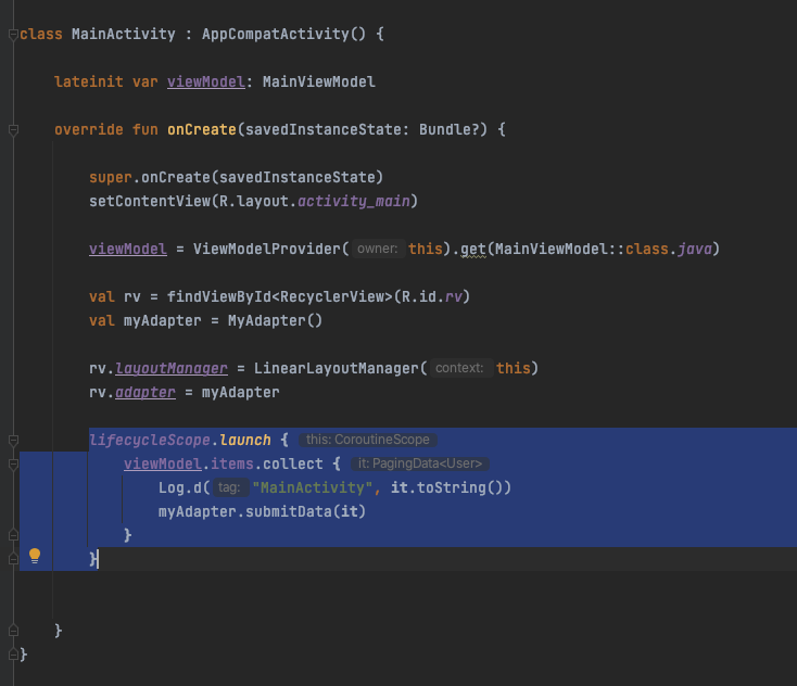 그러면 viewModel에서는 Pager를 어떻게 구현하고 있을까요?