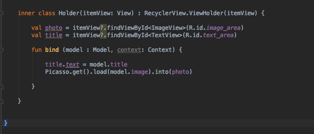 Picasso.get().load(model.image).into(photo) 이미지를 뿌려주면 아래와 같이 나옵니다.