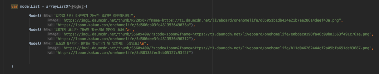 Model("일주일 내내 라면먹기 가능한 초간단 라면레시피!", "https://img1.daumcdn.net/thumb/R720x0/?fname=https://t1.daumcdn.net/liveboard/onehomelife/d85051b1db434e21b7ae28614deef43a.png"),