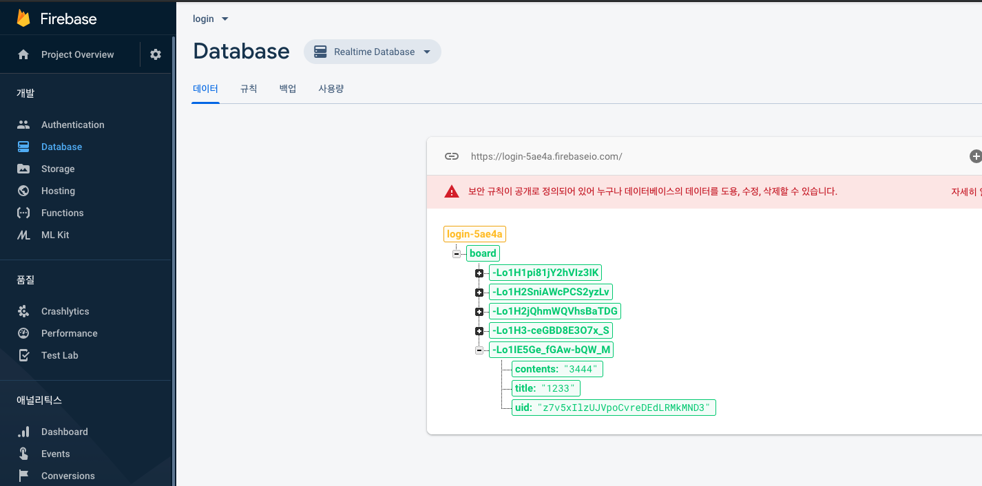 Firebase Database도 사용합니다.