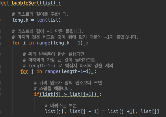 처음 버블 소트를 봤다면, 머리속에서 코드가 출력되는 부분이 시뮬레이션 잘 안될 수 있습니다.