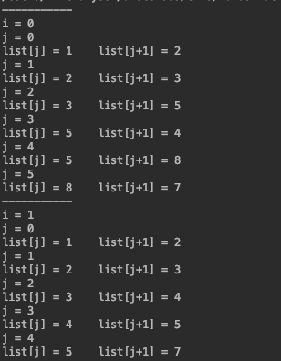 list[j] = 11 list[j+1] = 12