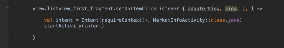 Fragment안에 listview를 클릭하면 이동할 MarketInfoActivity 를 만들어줍니다.