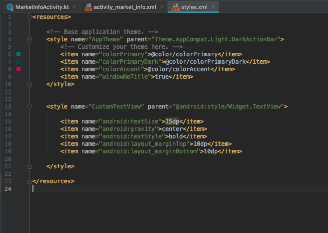 textview style을 한방에 적용할 수 있게 customTextView를 만듭니다.