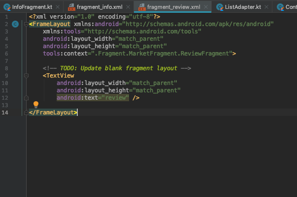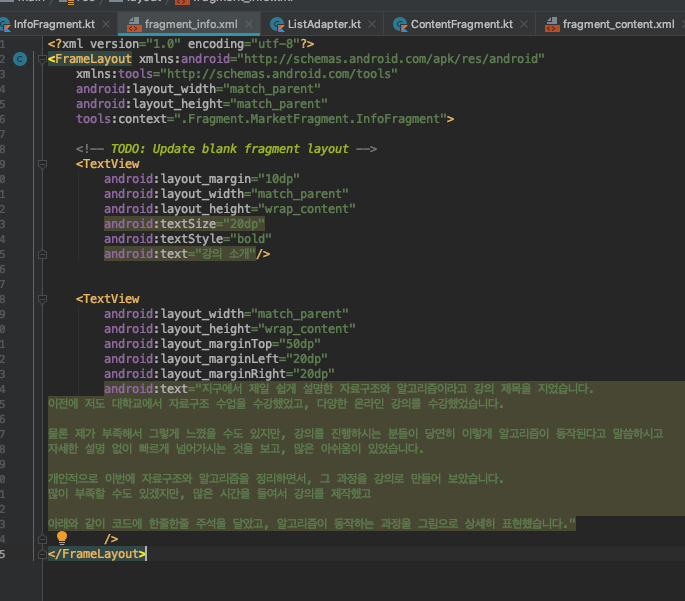 그 다음, FrameLayout 부분에 들어갈 부분 처리를 해줍니다.