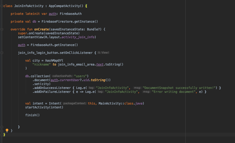JoinActivity에서 만들어주고, JoinInfoActivity를 만들어주고
