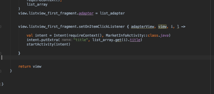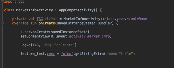 그 전에 intent로 title부터 넘겨주고 레이아웃에 뿌려줍니다.