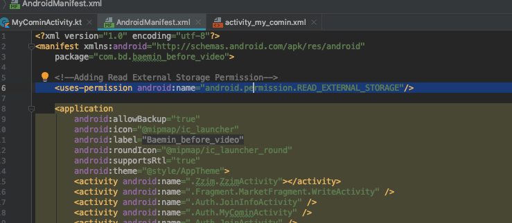 사진첩에서 받아와야 하니 permission을 설정해주고
