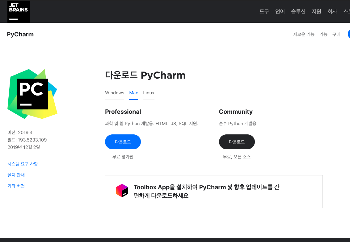 자 얘를 다운받으면 파이썬 프로젝트 만들기가 가능합니다.
