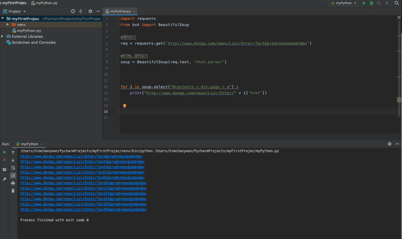이번에는 url링크를 찾아내서 크롤링 하는 방법을 알아보겠습니다.