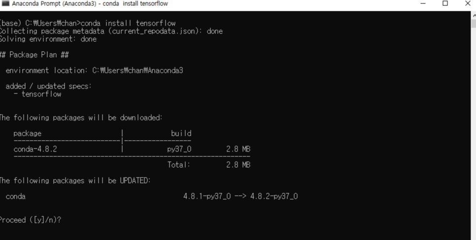 윈도우는 Anaconda Prompt에서 해주고, 맥에서는 그냥 콘솔에 해주시면 됩니다.